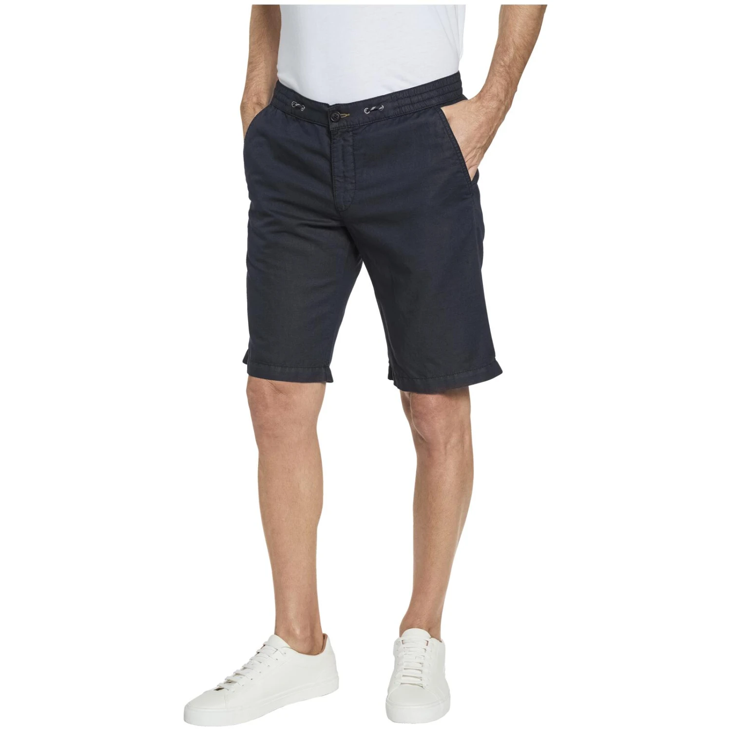 In Bermuda VIENTINO sind Sie luftig und schick unterwegs und können dabei höchsten Komfort genießen. Der bequeme Dehnbund kann ganz einfach mit Knopf und Reißverschluss verschlossen werden und verfügt über einen versteckten Kordelzug, sodass ein gemütliches Tragegefühl gewährleistet ist. Hinten gibt es zwei Gesäßtaschen und seitlich finden sich Eingrifftaschen, was das stilvolle Design um einen praktischen Aspekt erweitert. Bermuda VIENTINO ist einfach die perfekte Hose für einen eleganten Sommer, ob in der Stadt oder am Meer.