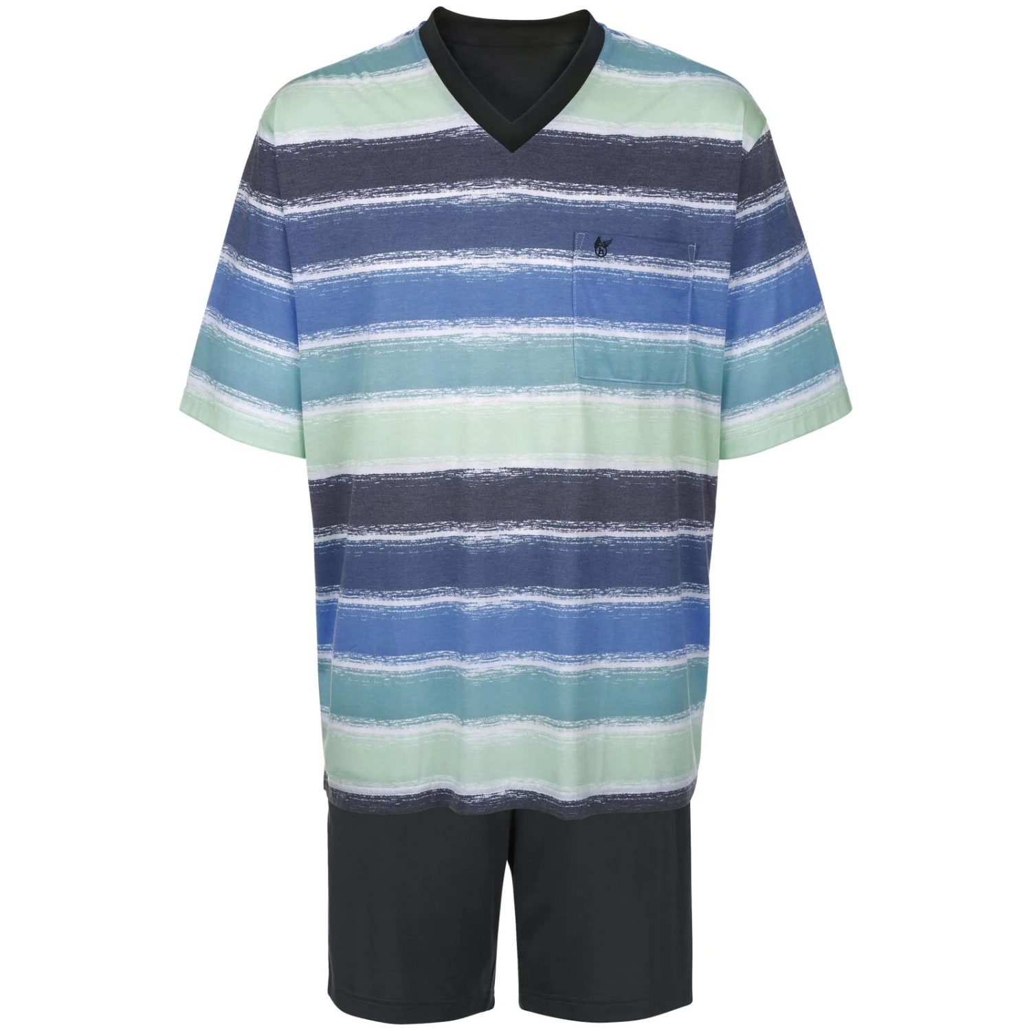 Warme Sommernächte unter dem klaren Sternenhimmel Italiens: Mit dem kurzen Schlafanzug PORENTO können Sie Ihre Nachtruhe von nun an luftig gestalten. Das Oberteil mit dem fröhlichen Muster in mehreren Farbtönen hat einen V-Ausschnitt und eine hochwertige Stickerei auf der linken Brust. So sieht es absolut modisch und stilvoll aus. Die kurze Hose ist dazu angenehm bequem dank des elastischen Bunds, sodass Sie getrost gemütliche Stunden des Schlafs verbringen können. Als besonderes Plus sorgt die Klima Komfort-Ausstattung für ein angenehmes Schlafklima. Also holen Sie sich PORENTO und machen Sie unruhige Nächte zu traumhaften Nächten.