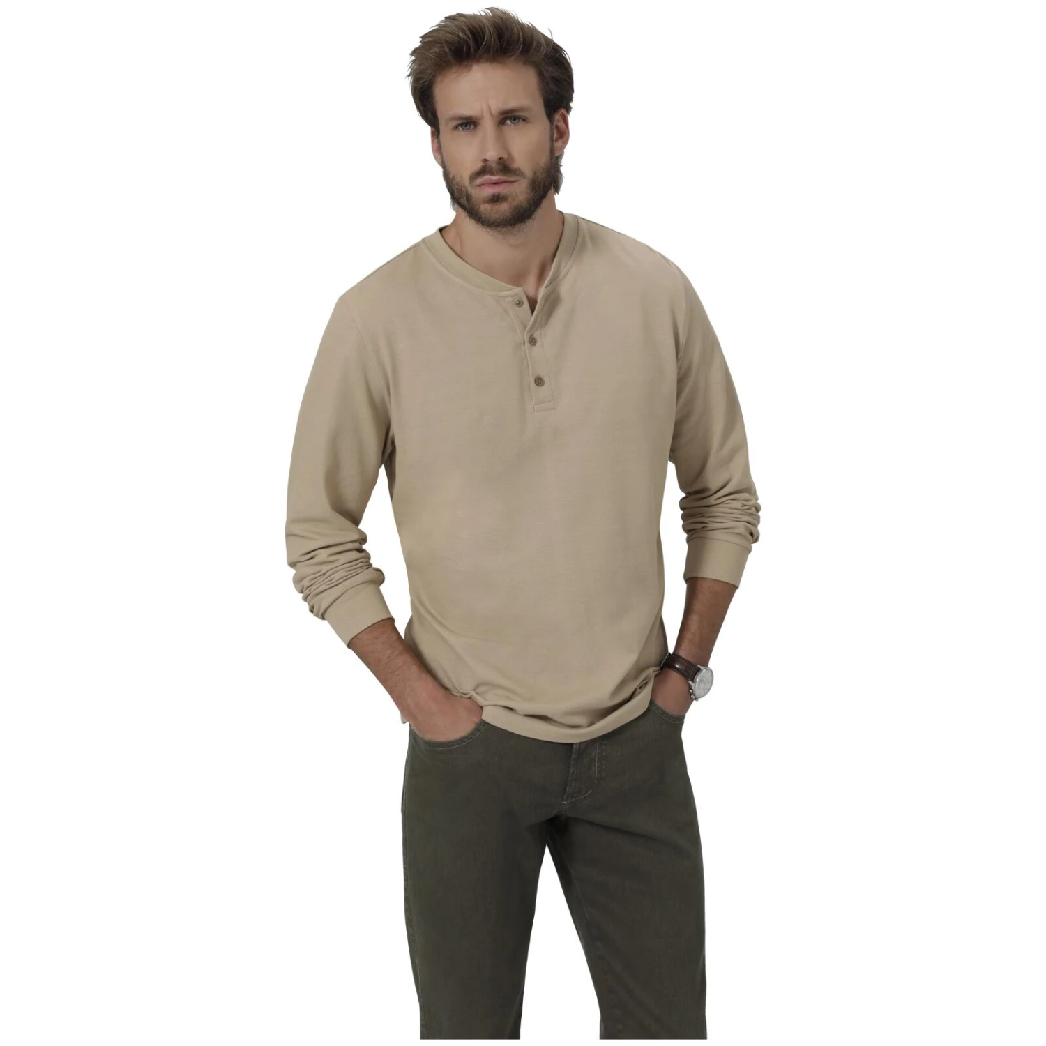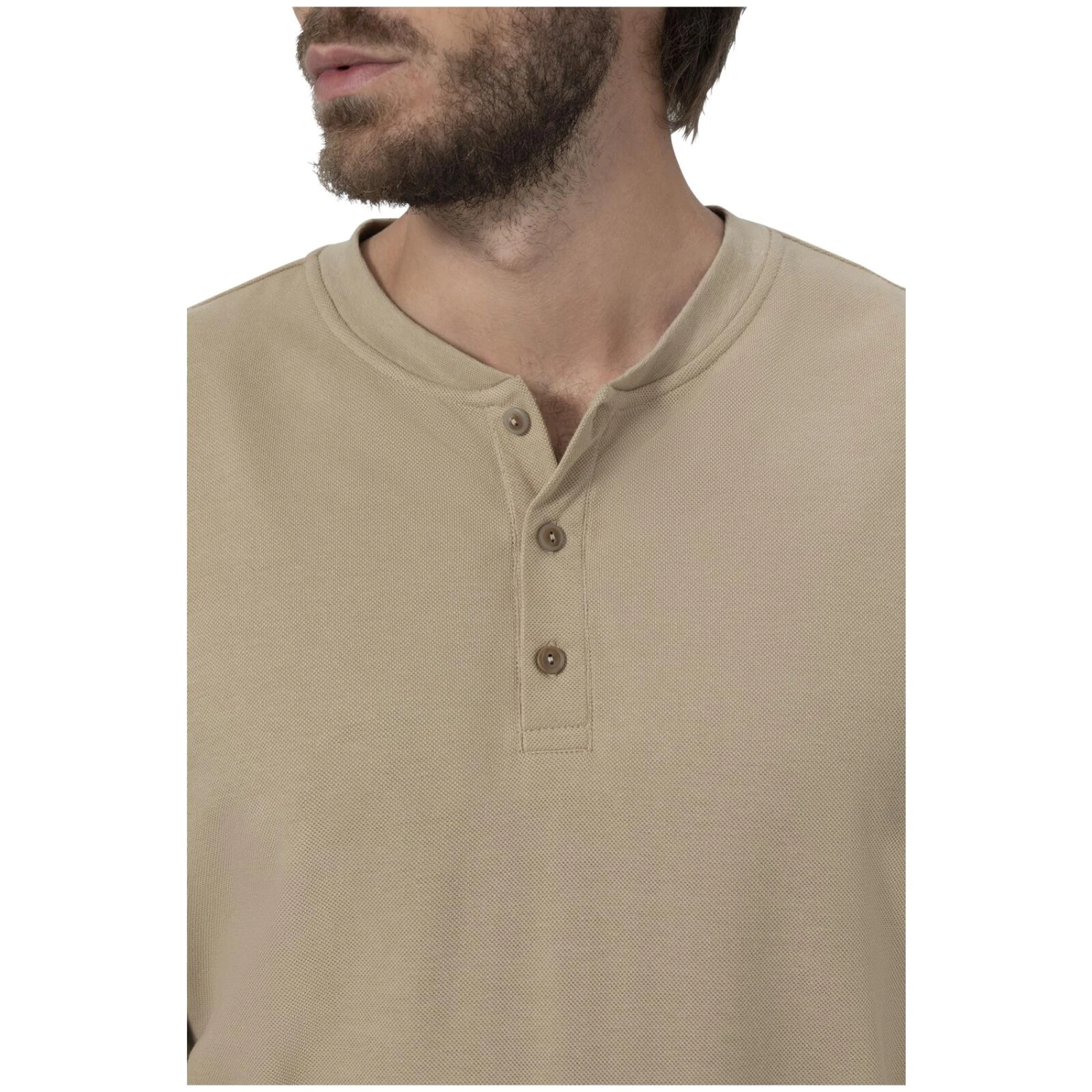 - Rundhals-Ausschnitt mit Knopfleiste