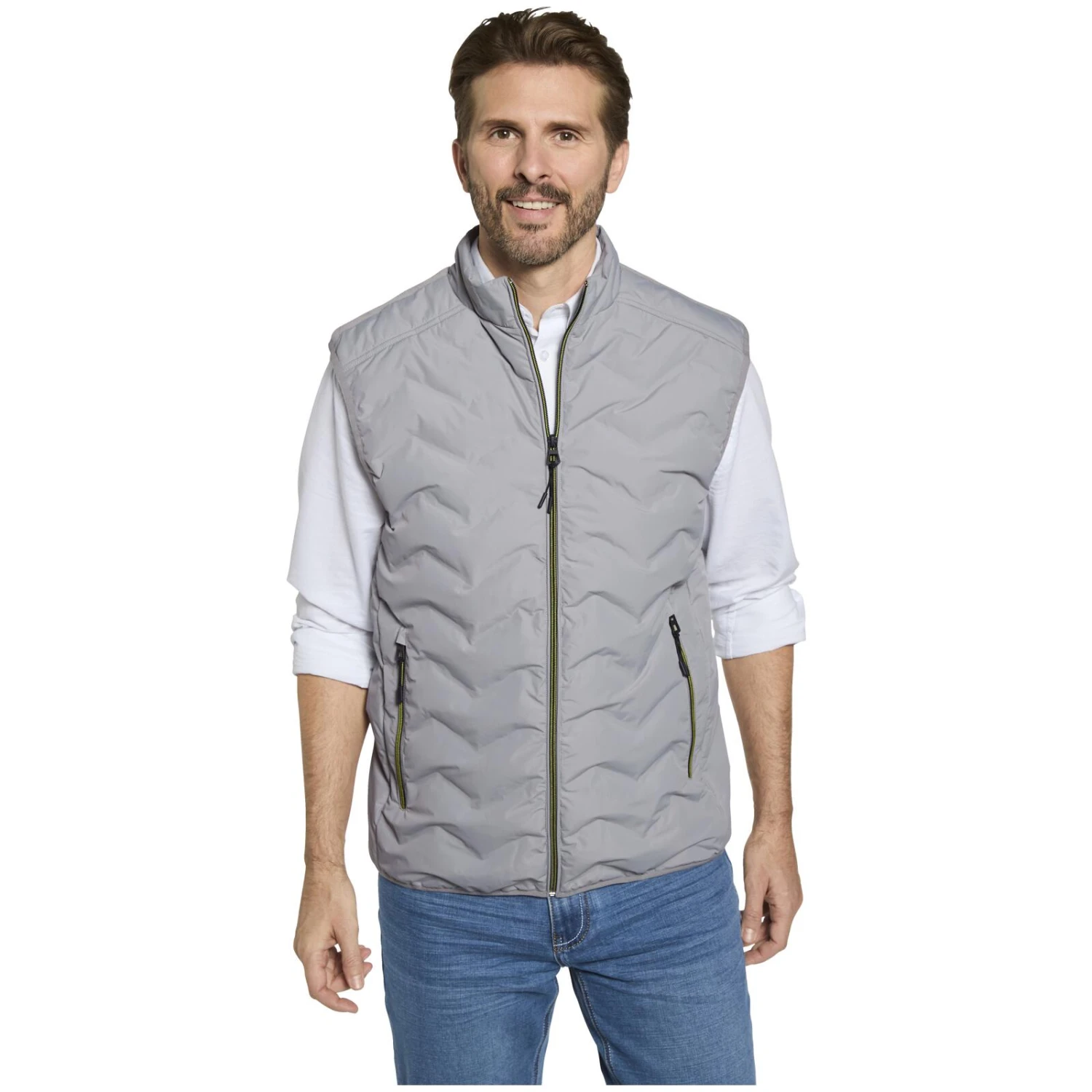 Steppweste VRIENZA ist perfekt für draußen und gleichzeitig in Sachen Stil nicht zu übertreffen. Der sportliche Stehkragen und der unkomplizierte Reißverschluss sind elegant und absolut simpel. Die Weste ist warm gefüttert und wattiert, sodass Sie draußen bei jedem Wetter bestens ausgestattet sind. Die vielen Innen- und Außentaschen bieten eine Menge Platz, damit Sie stundenlang an der frischen Luft sein können, ohne dass es Ihnen an etwas fehlt. Geschmackvolle Kontraste an den Reißverschlüssen ergänzen den Look und so sehen Sie in Steppweste VRIENZA alles in allem wie ein echter Gentleman aus.