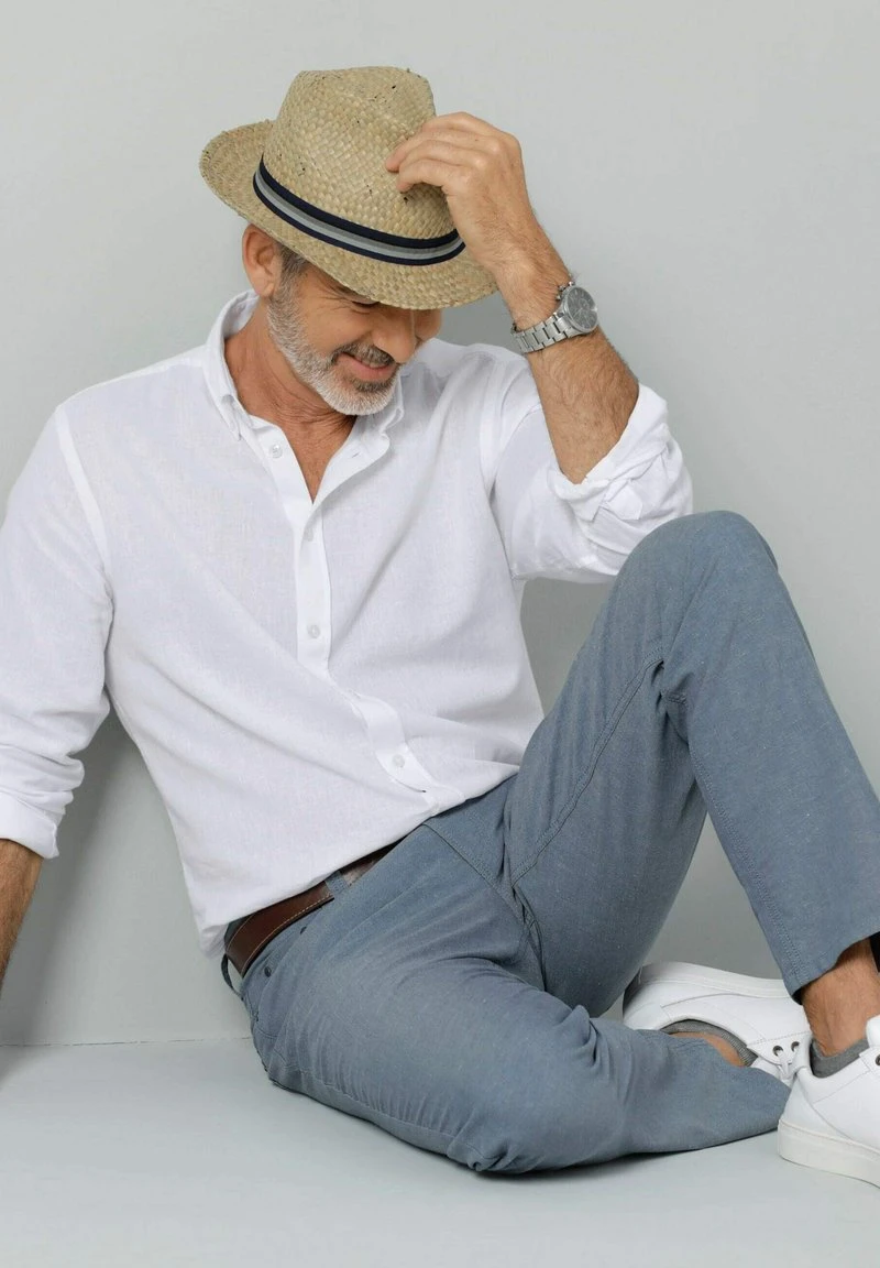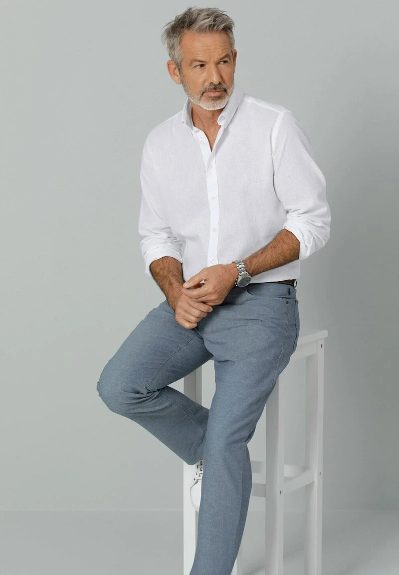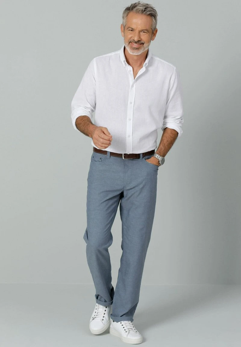 | Material Oberstoff | 51%25 Baumwolle, 22%25 Leinen, 17%25 Polyester, 9%25 Viskose, 1%25 Elasthan |
