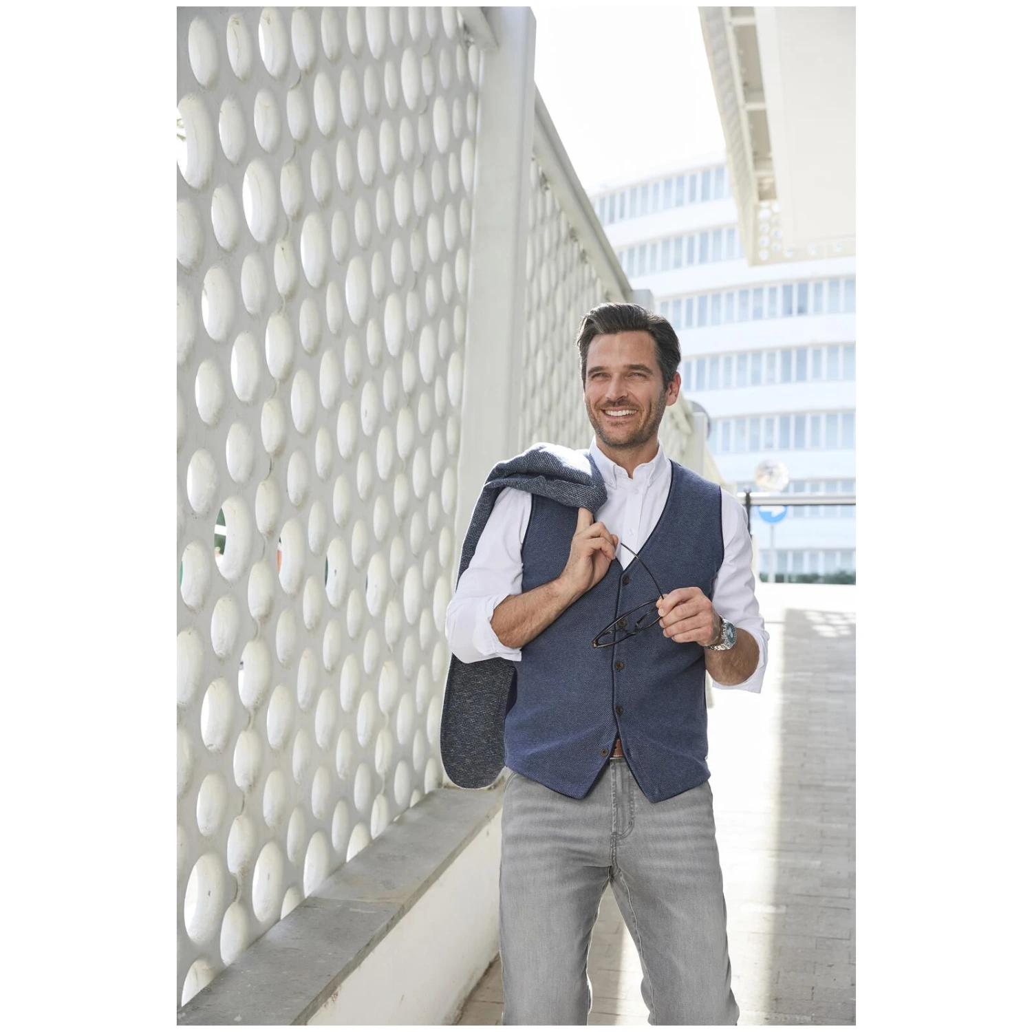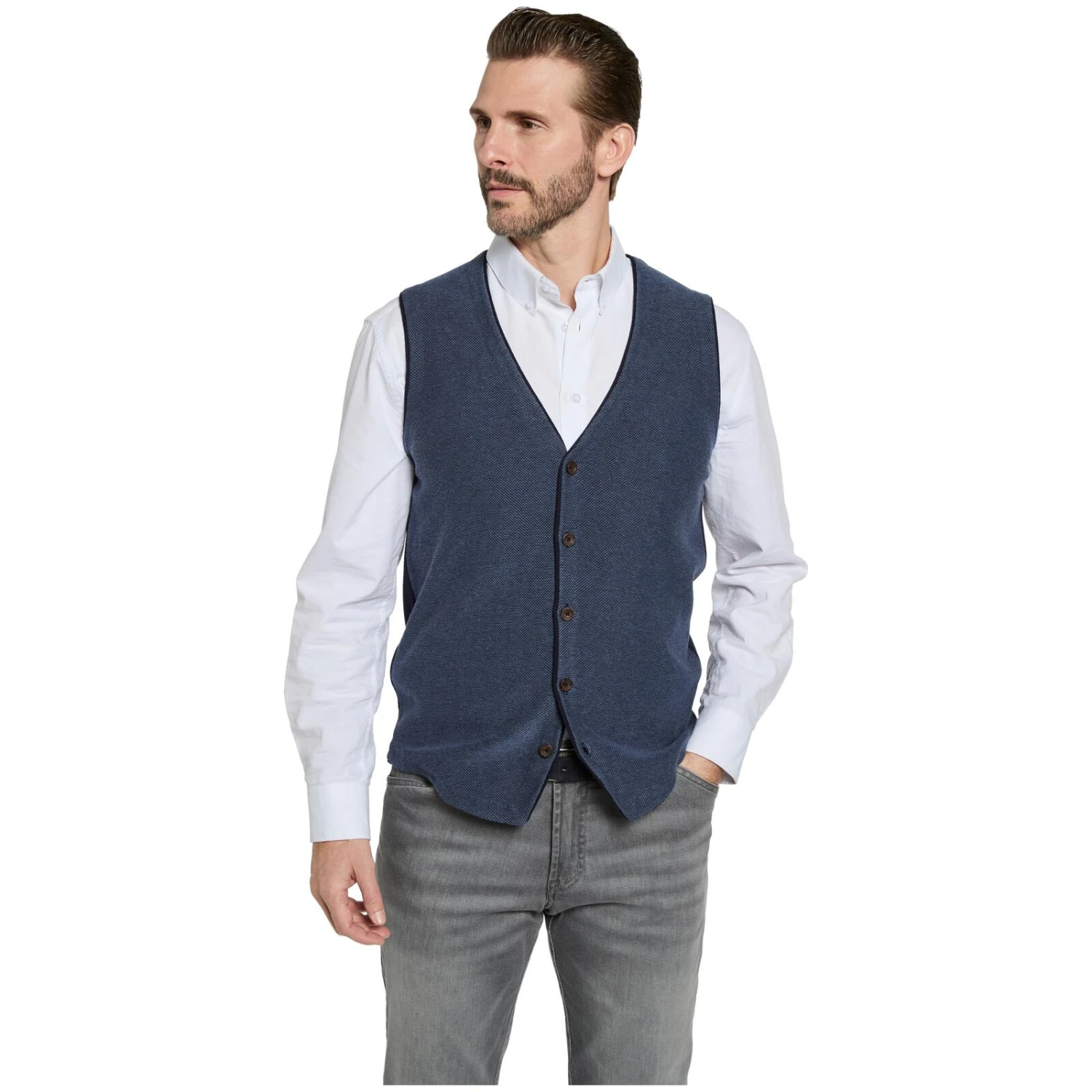 Dieses Schmuckstück ist perfekt für alle echten Gentlemen da draußen: Strickweste MODARINI strotzt nur so vor lauter Stil. Die Weste mit modischem V-Ausschnitt und klassischem Knopfverschluss garantiert Ihnen einen absolut eleganten Auftritt bei der Arbeit, in der Freizeit oder auch bei feierlichen Anlässen mit legerer Atmosphäre. Ein Metallpatch am Saum ist ein hochwertiges Detail, das die Weste optisch noch weiter aufwertet. In Strickweste MODARINI sehen Sie so ohne Frage top gepflegt und wahnsinnig stilbewusst aus.