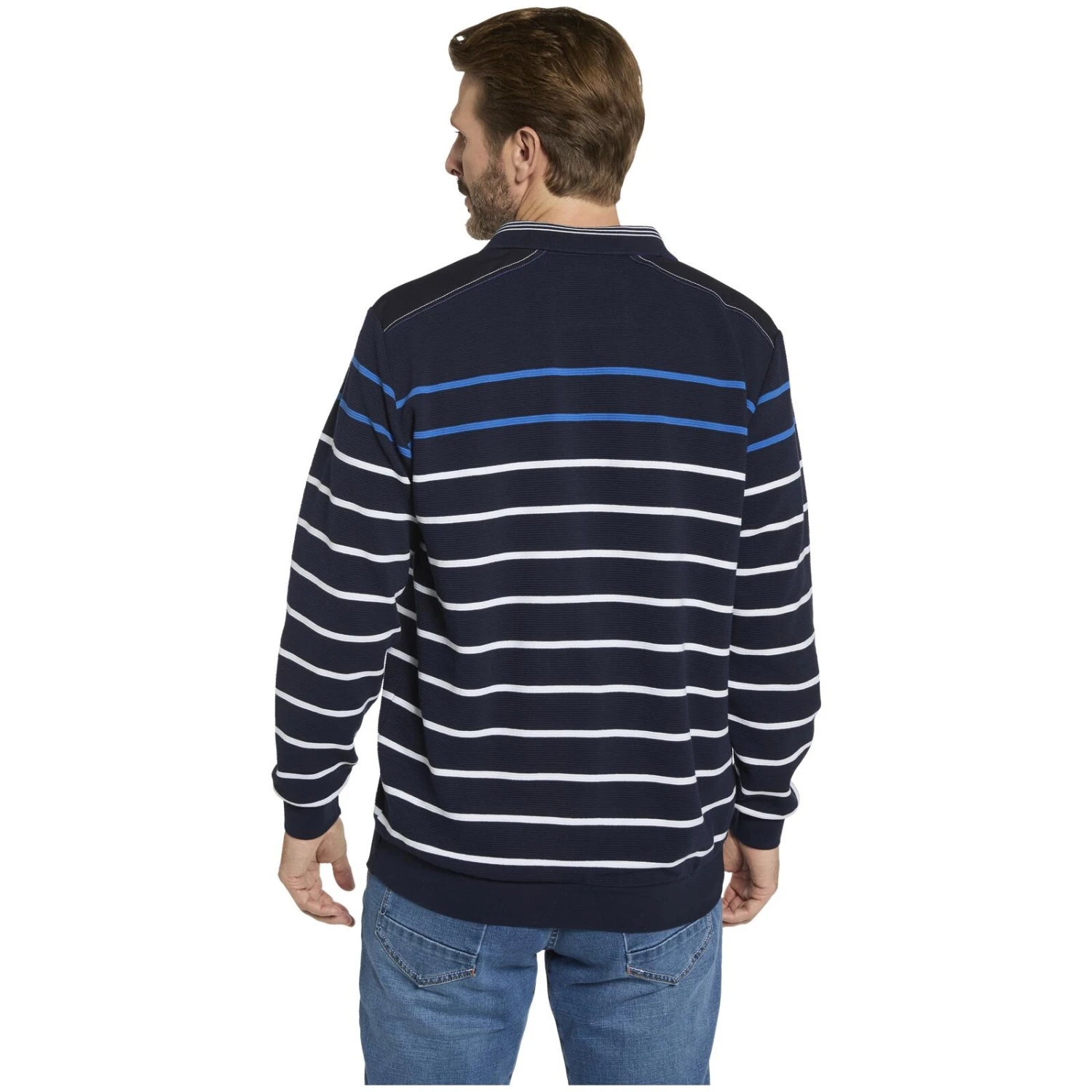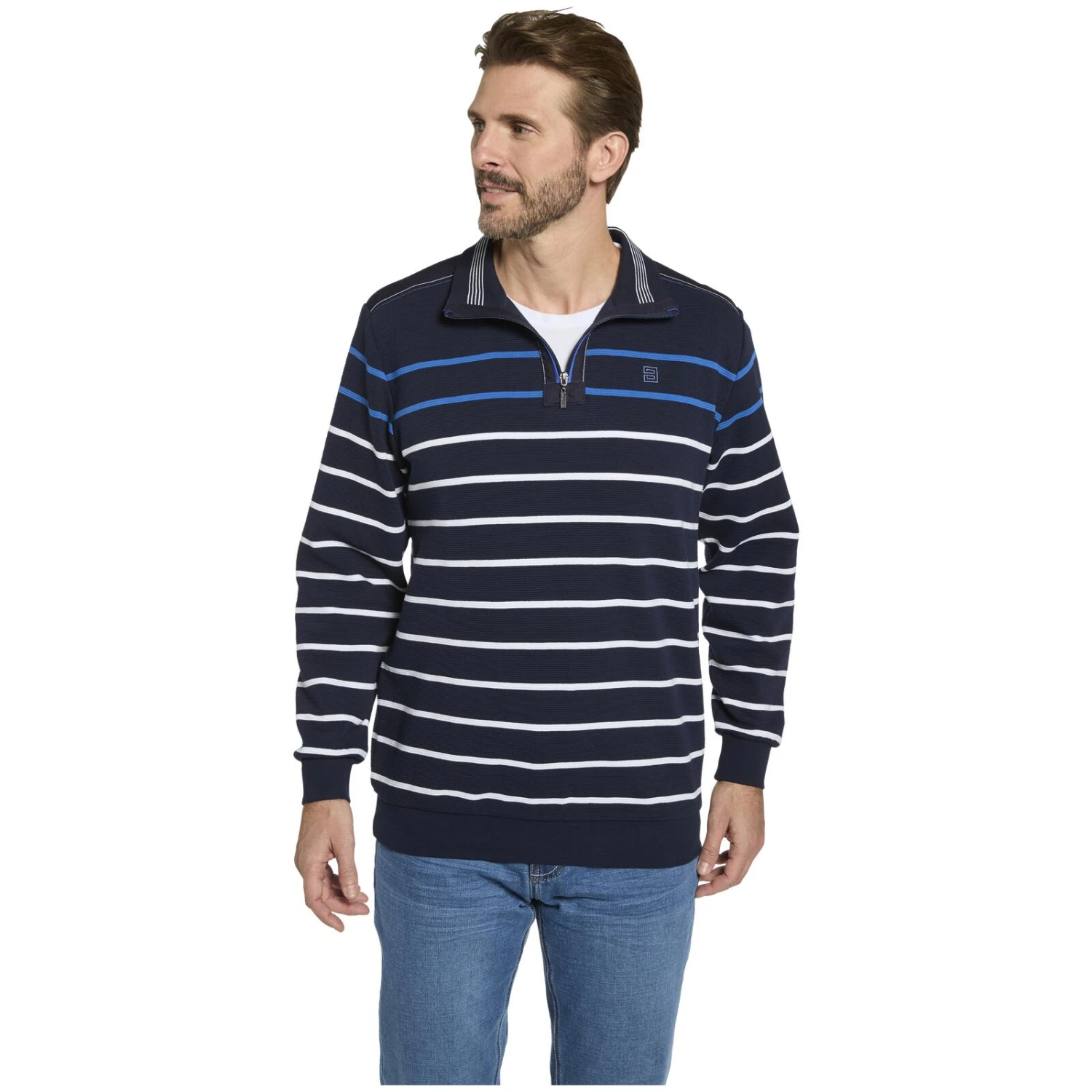 MODASTELLA ist ein Sweatshirt wie das Rauschen des Meeres. Schon die mehrfarbigen Querstreifen auf der wogenden Oberflächenstruktur erwecken den Eindruck von Ketten aus Wellen, die bald auf den Strand treffen. Ein Umlegekragen mit Reißverschluss bietet ausreichend Schutz vor stürmischen Meeresböen und die elastischen Bündchen an Saum und Ärmeln schmiegen sich an Ihren Körper wie das Wasser beim Eintritt ins kühle Nass. Eine feine Stickerei auf der Brust schwimmt auf dem Shirt wie eine kleine Boje. Also ab an die Küste in Sweatshirt MODASTELLA.