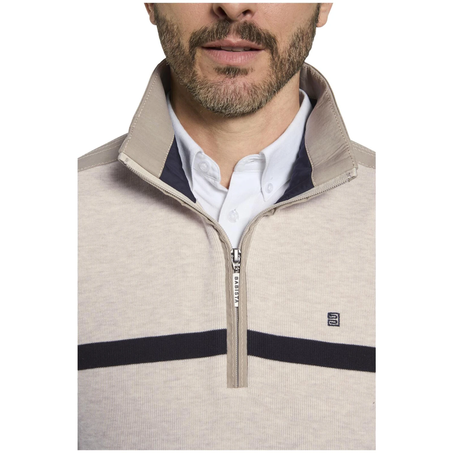 Frisch aussehen bei frischer Brise: Mit Sweatshirt NELVENTO wird das ein Kinderspiel. Der Stehkragen lässt sich einfach umschlagen und mit einem Reißverschluss zuziehen, um Ihren Hals vor Böen zu schützen, die vom Meer aufziehen. Das Muster ist stilvoll sowie dezent und seine Farben und Kontrastspiele erinnern an den weiten Ozean. Eine filigrane Stickerei auf der Brust sorgt für einen hochwertigen Look und die elastischen Ärmelbündchen für einen Tragekomfort so groß wie die sieben Weltmeere. In NELVENTO können Sie so also stilsicher in See stechen.